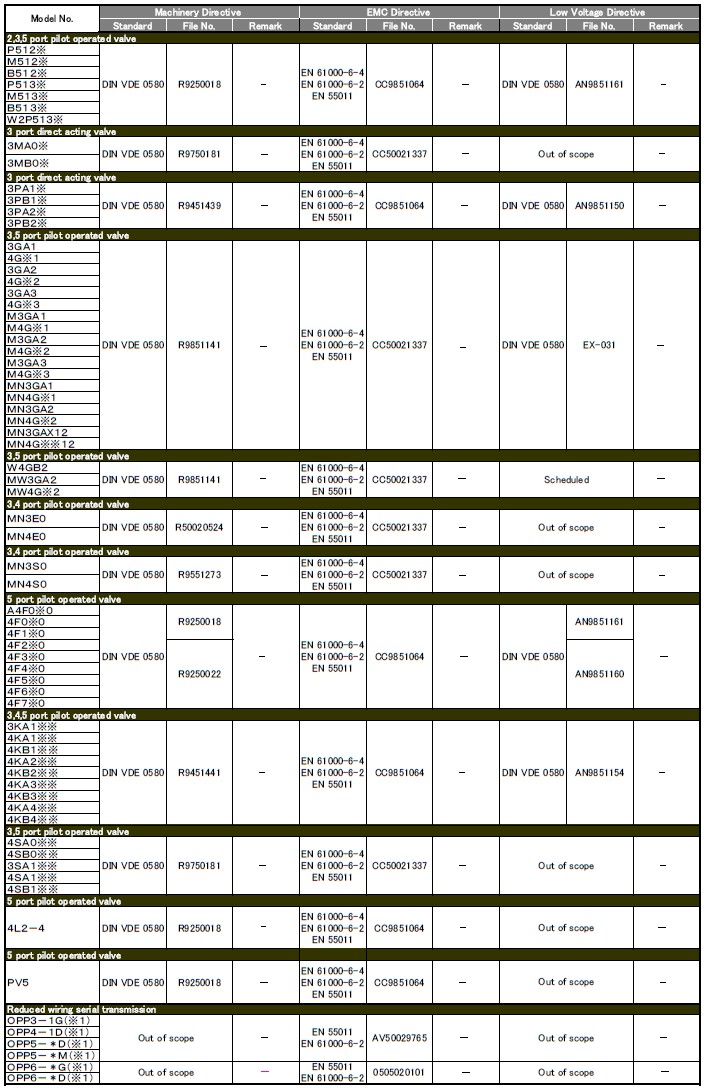 - List of CKD Products Conforming to EU Standards (Pneumatic Valve)