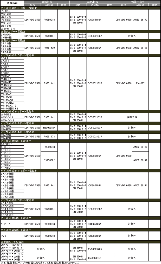 - CKD欧州規格適合品リスト(空圧バルブ)