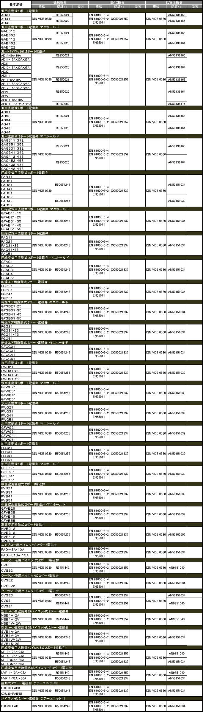 - CKD欧州規格適合品リスト(流体制御バルブ)